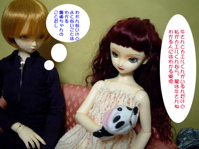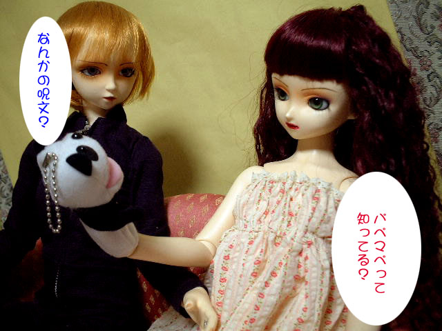 ソファーを買ったので、二人並べて座らせてます。